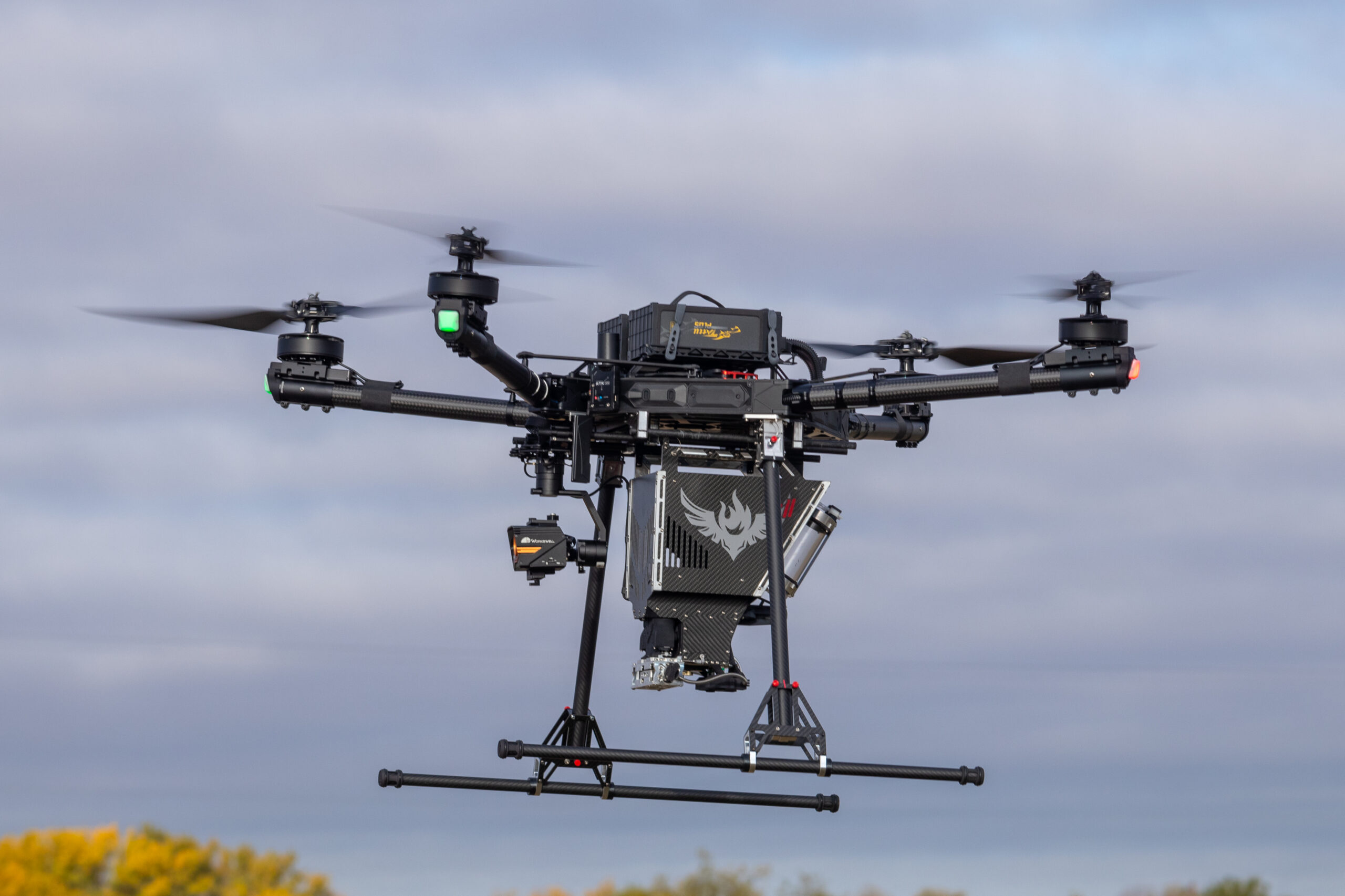 - Freefly ALTA X drone with custom landing gear and transport case, and integrations for camera and IGNIS ignition system.